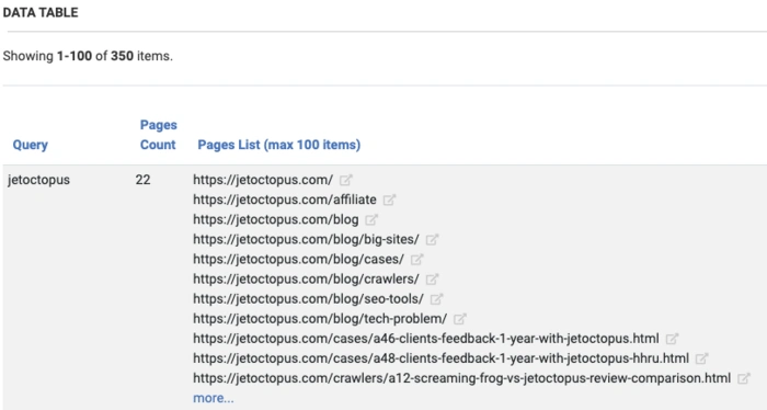Cannibalization is a phenomenon that every website goes through. That is, when different URLs of your website compete with one and the same query. This section should help you realize the scale of cannibalization and to resolve the situation for one query with more than 50 rankings.