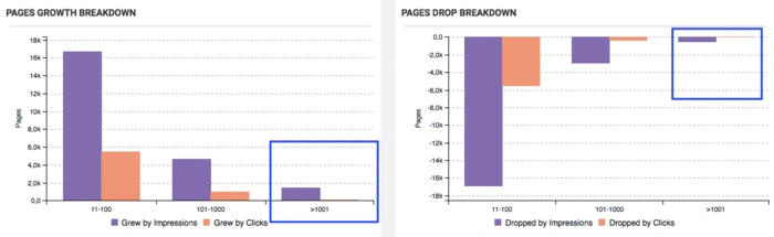 Another vector of analysis–within Pages: New pages, Lost Pages, Winners and Losers by different criteria.