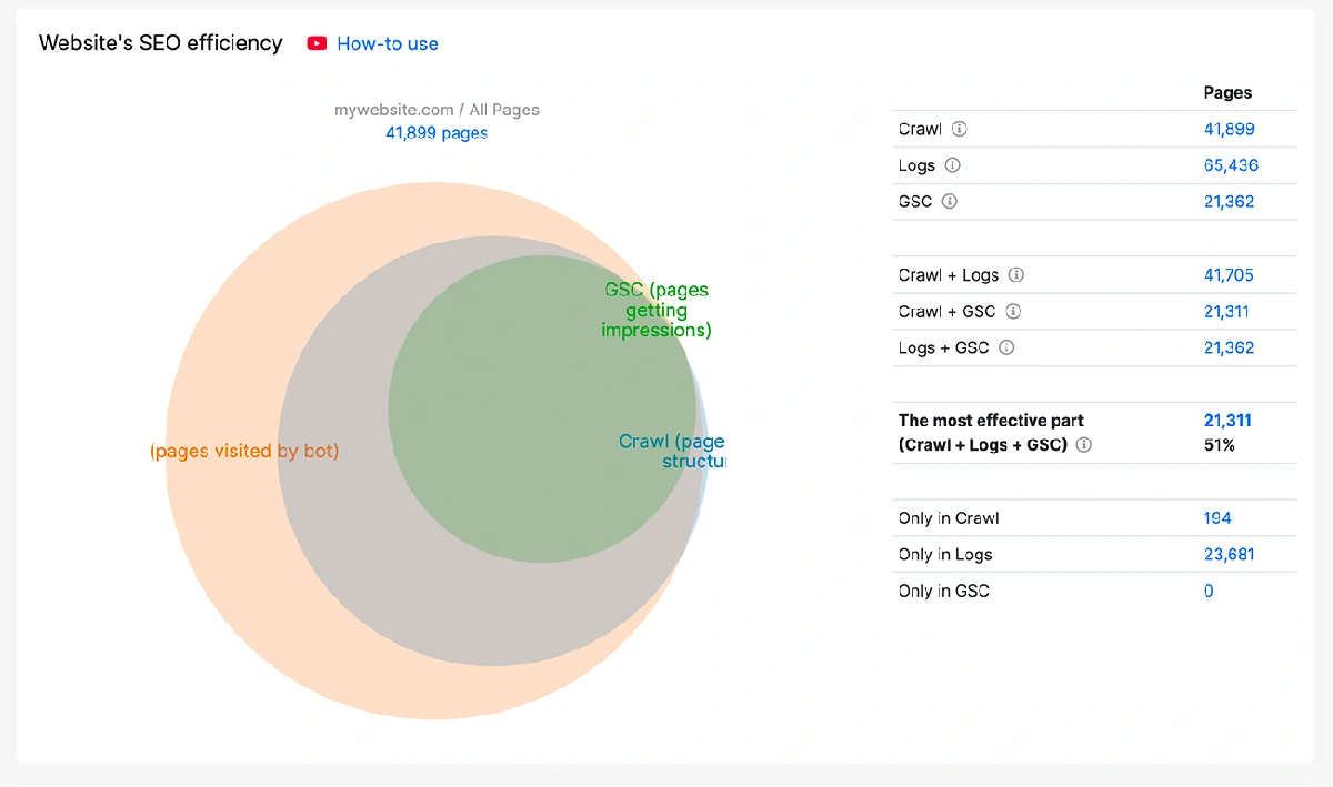 You can join datasets of crawl, GSC, and logs with multiple