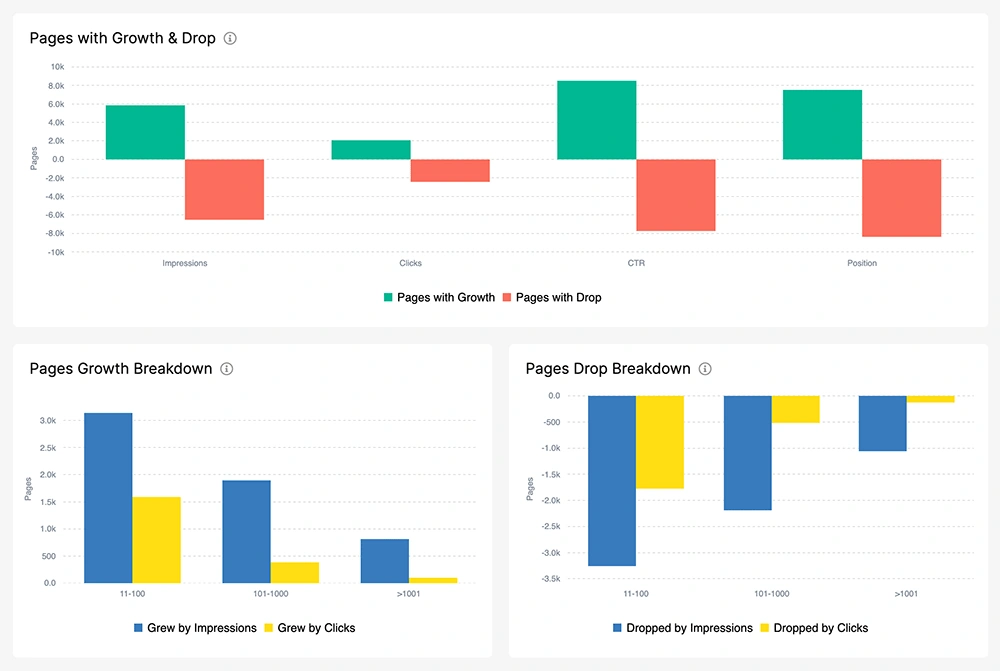 Pages with growth and drop. In one chart get the filtered urls with growth