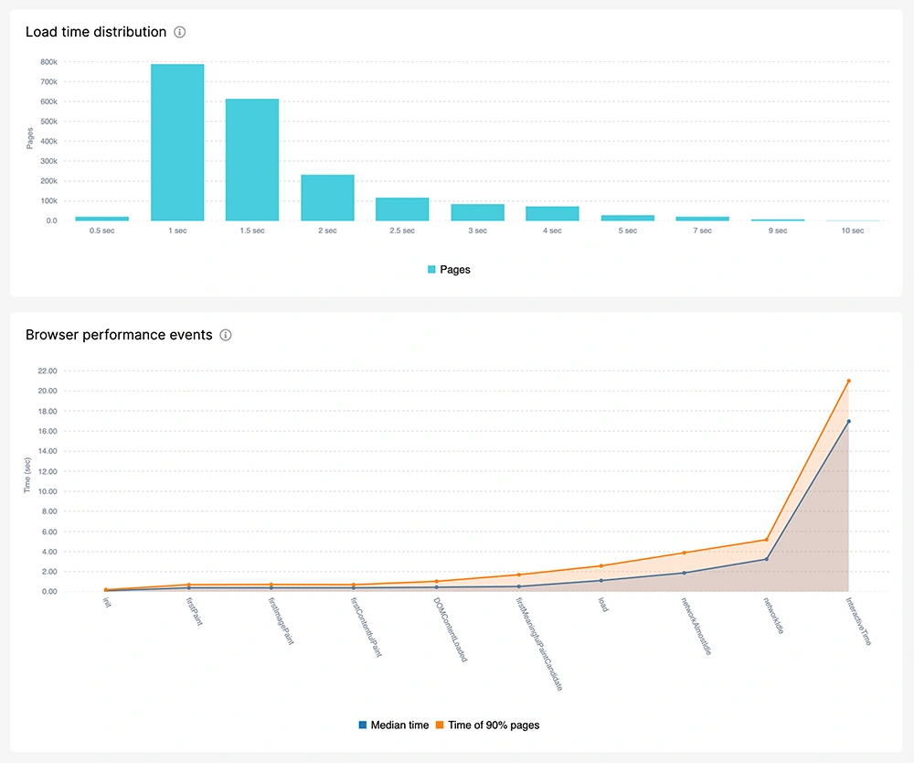 Paint, First Contentful Paint, Page load, and the time it takes to finish all JS