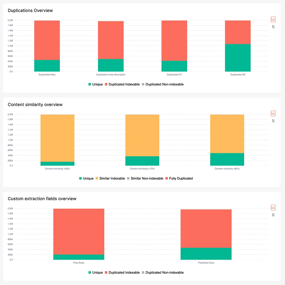 Near duplicates. Analyze content duplication. Find similar content for more