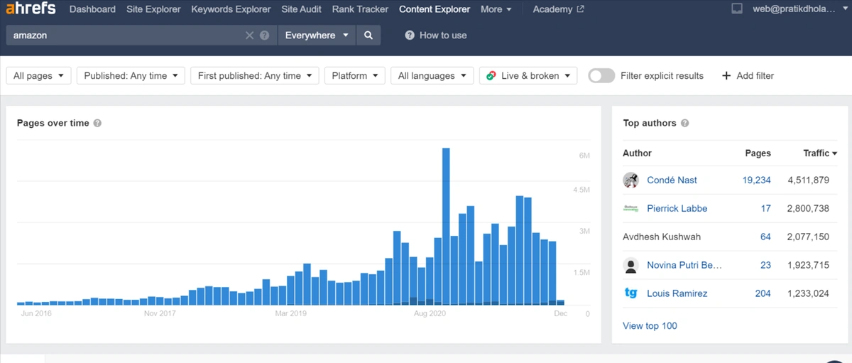 These links are easy to fetch as the writer is already familiar with the brand. Ahrefs’ Content Explorer gives you a detailed overview of the mentions over time.