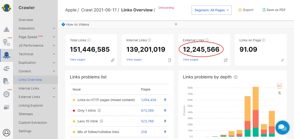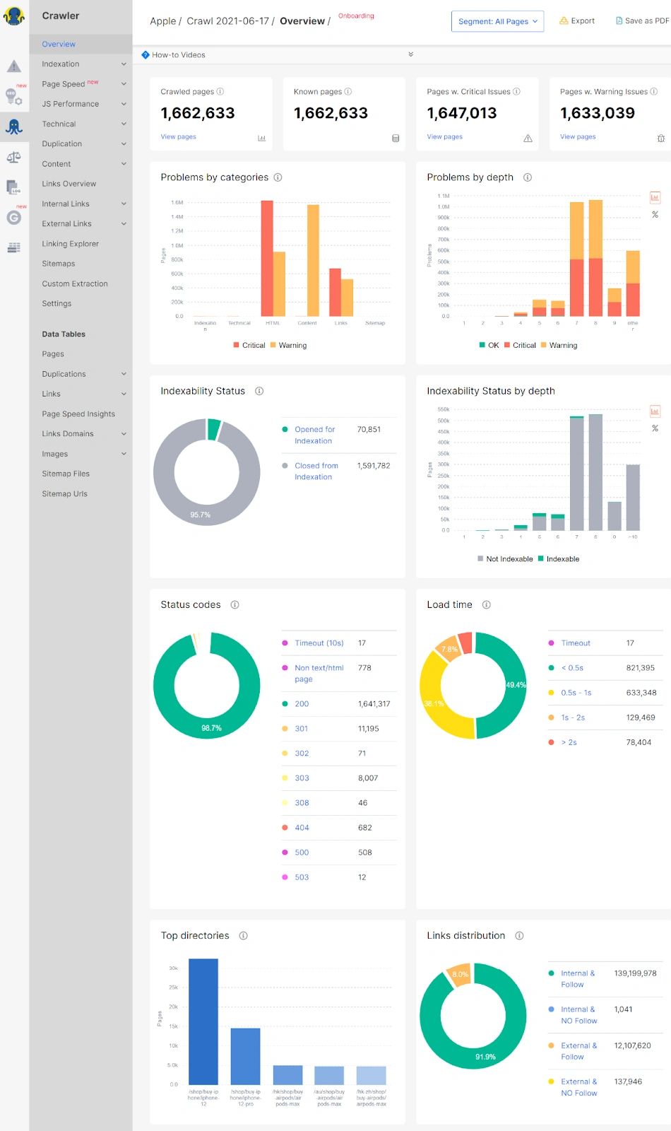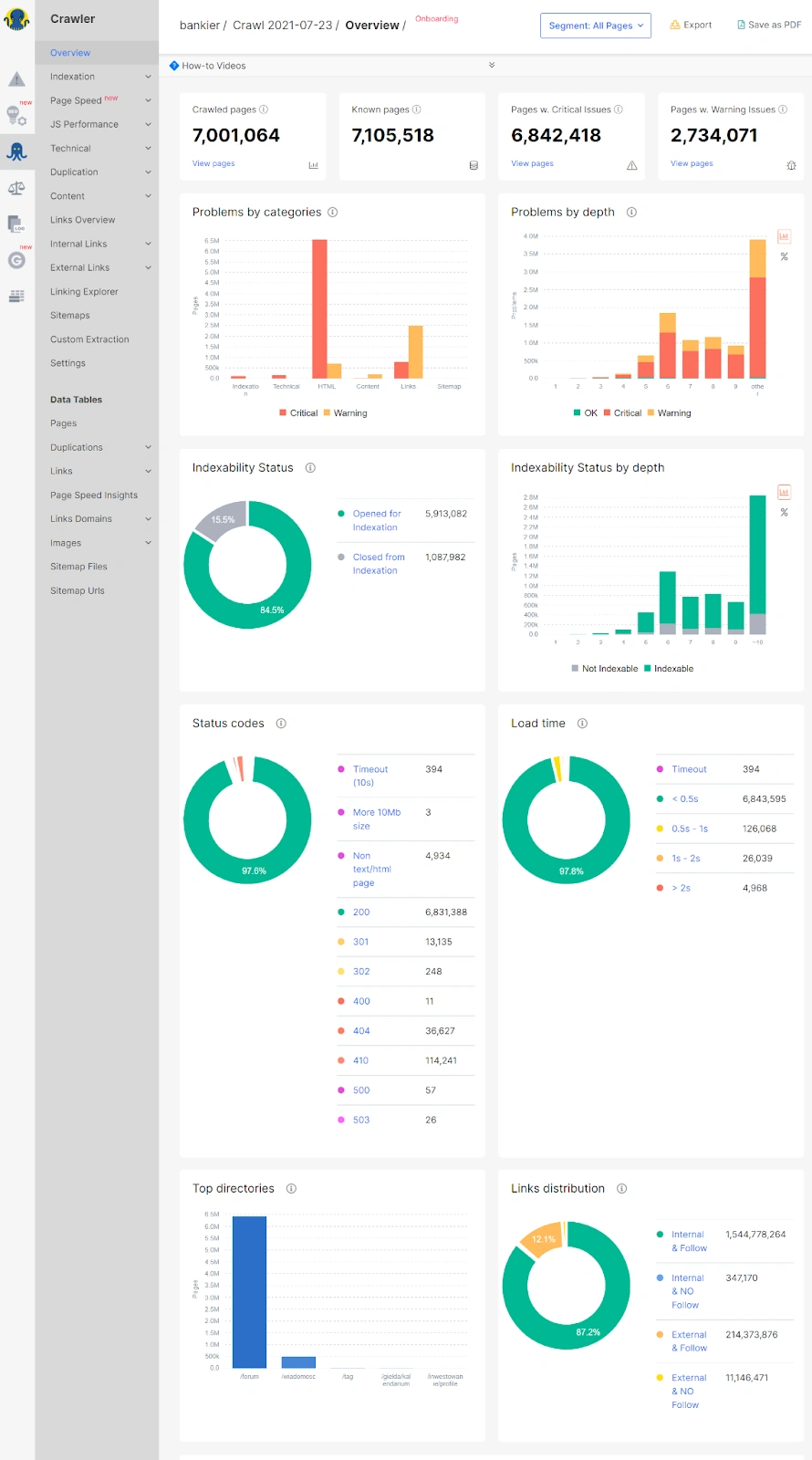 Count on SEO crawlers like JetOctopus that can crawl your website within seconds and point out the top crawl issues in your website.