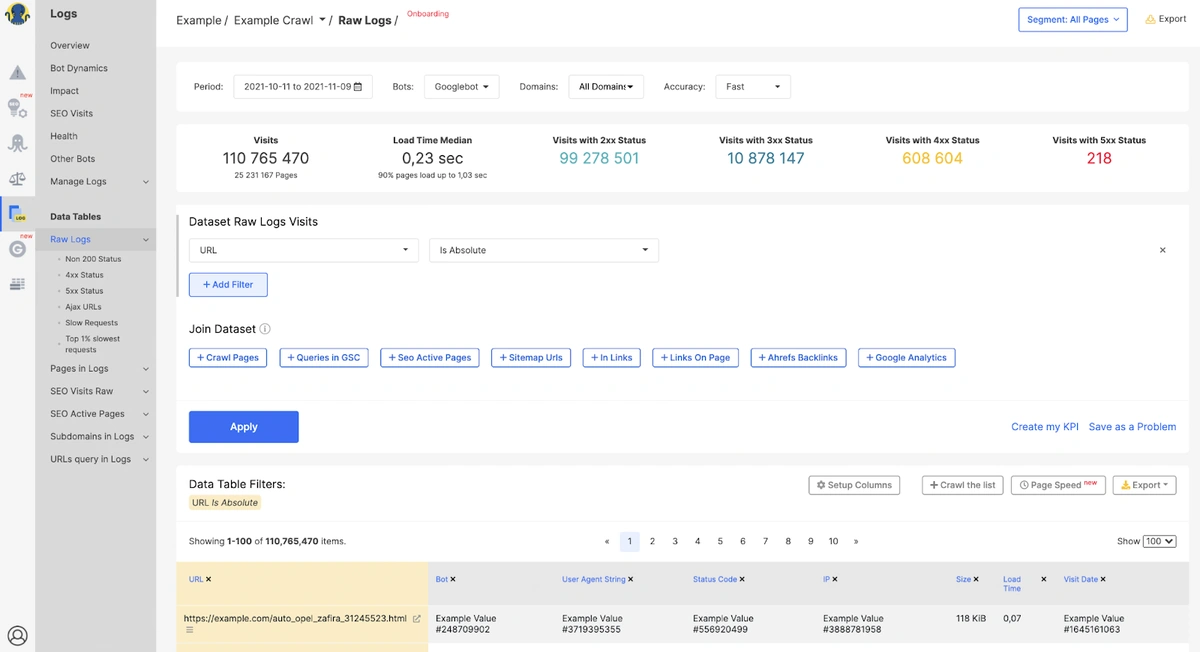 Notice how Raw Logs in JetOctopus spots the priority issues.