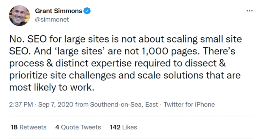 Absolutely! Though the SEO fundamentals are the same, large-scale websites have several layers of complexity. Thus, the traditional fixes don’t work in such cases.