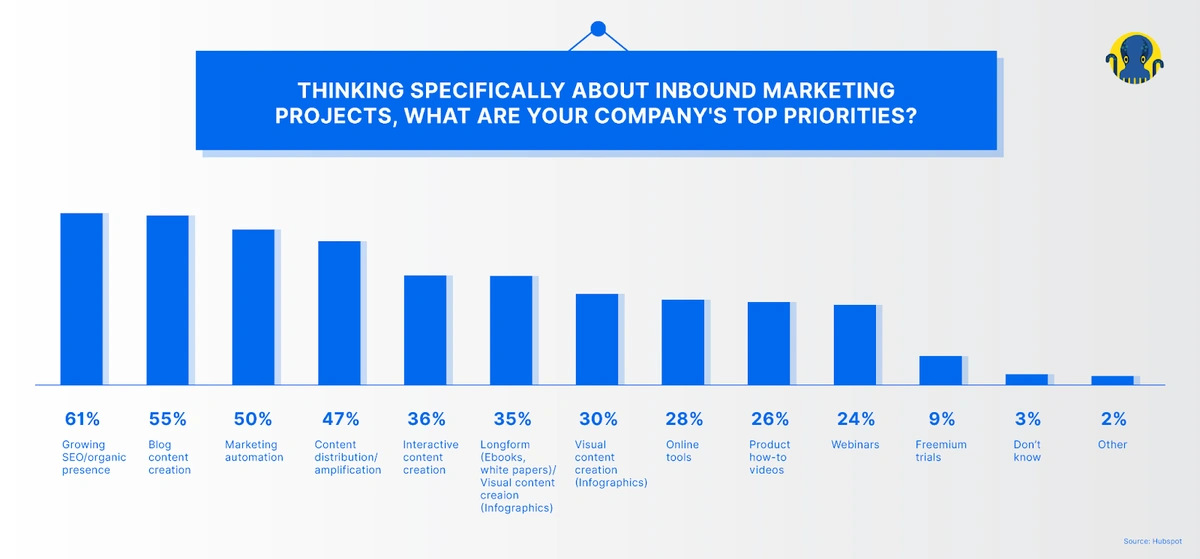 The topmost challenge faced by inbound marketers today is generating traffic and leads. Hence, growing their organic presence/ SEO is their number one priority.