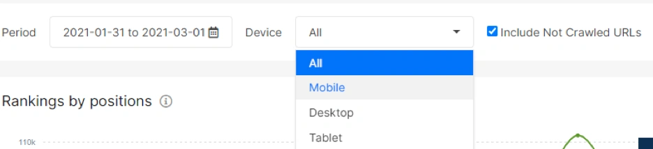JetOctopus is one of the unique tools that can show and tell you how many queries that your web site has ranked for a specific date for which devices and countries. Normally, this data can be tracked with third-party services but JetOctopus extracts this information from the Search Engineâs data, directly. Thus, it is important.