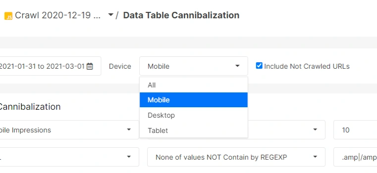 A proof of JetOctopusâ detailed vision can be found in the cannibalization section, because they differentiate the mobile search cannibalizations and desktop search cannibalizations from each other.