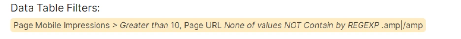 But, I will show this more detailed way within the section of âData Filtering and Exportingâ. In this example, we filtered all the pages to have more impression than the previous period.