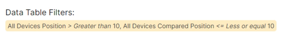 Below, you can see the filtering option for the âGone from Top 10â.