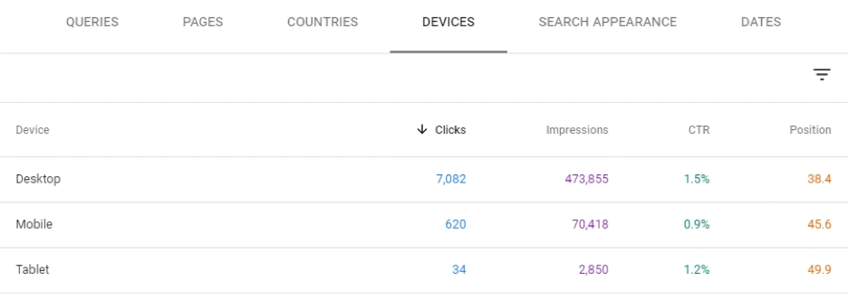 In Google Search Console, we have data for device types for different data dimensions such as Impressions, Clicks, CTR and Position. But, having a smoother interface is making the same data more efficient to be absorbed by the SEOs. So, in other words, Data Visualization is important to understand the same data in a better way.