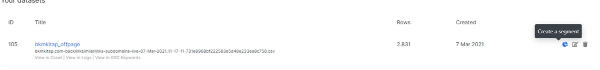 And, if you want you can use these customizable datasets for creating quick site segments, from the same section (my data section), you can change the columns, labels and data types as you want.