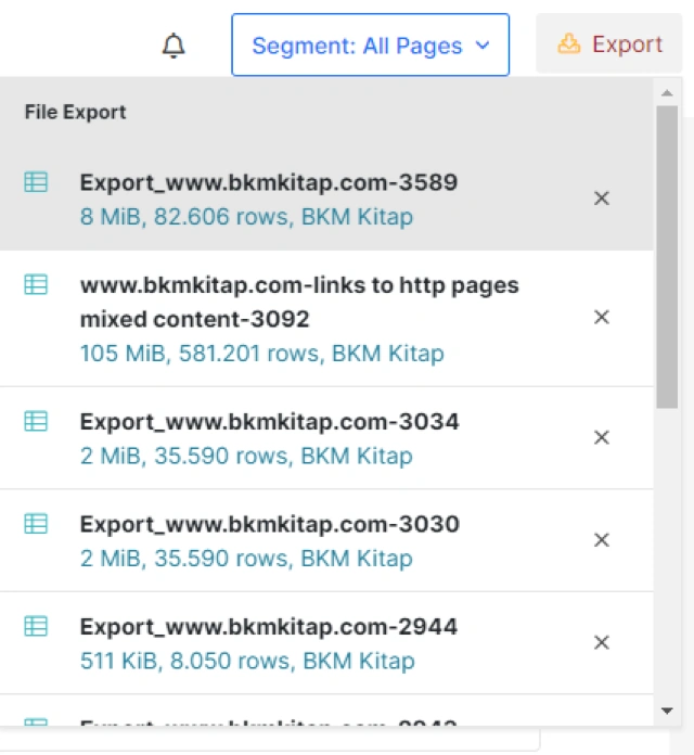 In JetOctopus, you can export anything. I know that this explanation is short. But, this is the truth. Every data can be exported with the best possible customizable way you want. In the âExcel Formatâ there is a limit for 50.000 rows and I believe that for most of the sites, this is enough.