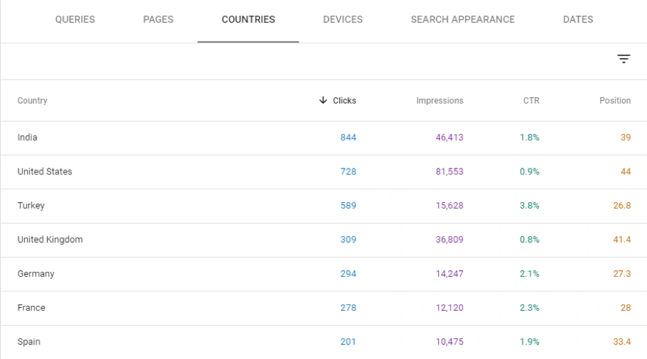 Overview Section of JetOctopusâ Google Search Console Moduleâs last section is Organic Search Data per Country. A similar situation is also valid here like in Organic Search Data per Device Type.