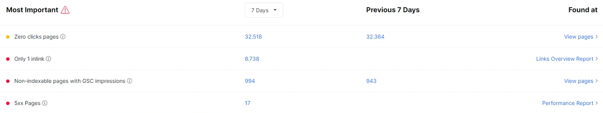 Below, you will see that JetOctopus also has a âMost Importantâ section for other types of problems.