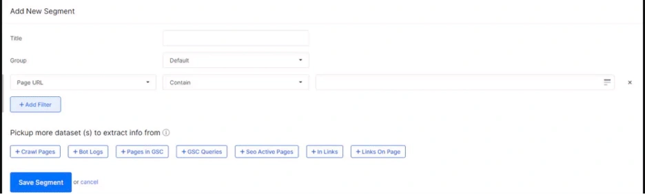 Above example shows different aspects and options for data filtering and how you can use it for quick site segmentation and SEO Insight extraction. You can use site segmentation for Page URLs, or crawl log files and internal links.