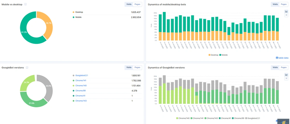 Years ago, switching to mobile-first indexing was a hot topic, as it changed the crawl ratio between the two bots. However, nowadays it’s not so important, usually most websites are crawled mostly by the Smartphone bot.
