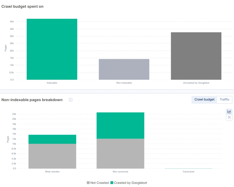 Non-indexable pages may waste as much crawl budget as is their share of all website pages.
