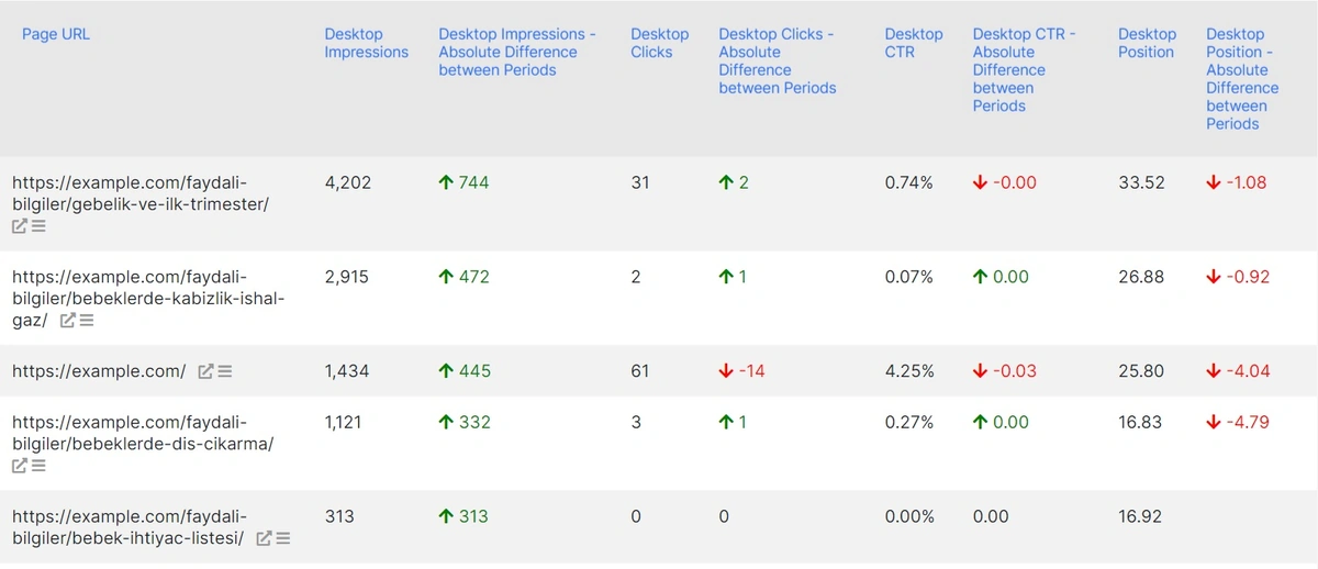 User behavior frequently varies on mobile and desktop versions of your site. That’s why the data on impressions, clicks, CTRs, and even rankings in SERP will also differ for mobile and desktop versions. We recommend that you apply the following TOP-down approach to your GSC keywords data:
