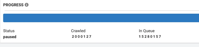 2. We found almost 900 internal links on each crawled page and calculated that there were around 16M (!) pages in total. We decided to pause the crawl to figure out why the website is so huge.