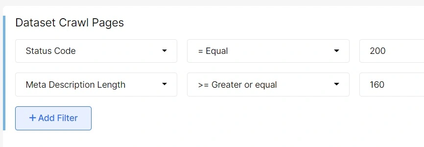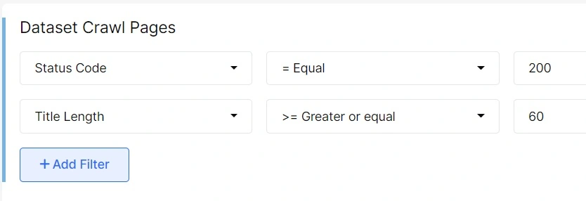 2. In Datatable choose Title Length filter – Greater or Equal – 60 symbols.