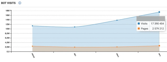 The number of visits that a bot has made on the site as well as the number of crawled pages has increased since July as shown below: