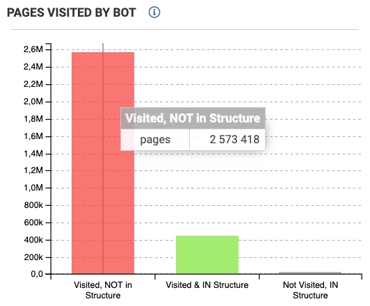 Before moving the content to a new CMS, it’s essential to get rid of useless data. To achieve this, SEOs are programmed to crawl the site to see the full structure and integrated historical log files to understand whether bots would perceive URLs as it was intended to do. The result was astonishing since there were 2,5 M of orphaned URLs: