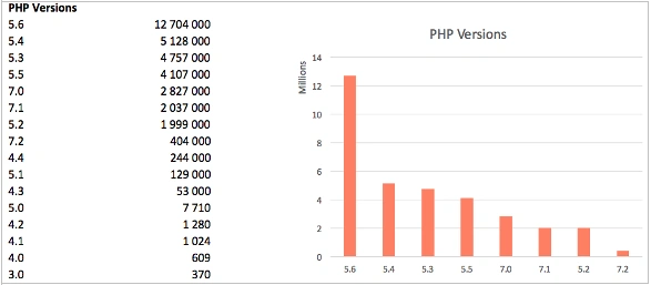 Personally I am somewhat surprised at the popularity of 5.6 and at the same time I’m glad the total number of 7 version is increasing.