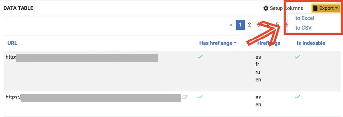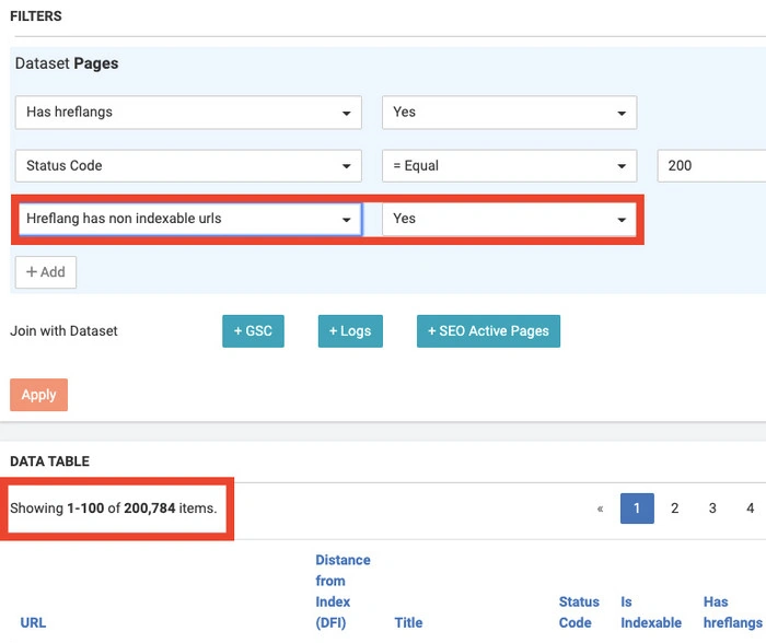 3. In Datatable we chose additional filters one by one to find bugs on pages with hreflangs: