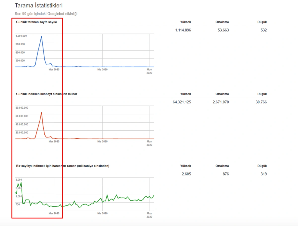 Also, Googlebot was crawling more than 15.000 Pages in a day because of this URL bloating. After we fixed that, it continued to crawl 15.000 pages for 1 month. It always seems that there is 404 for the %99 of the time. After a while with the help of 410 Status Codes and its own Algorithms, it started to crawl 10.000 and 5.000 pages in a day.