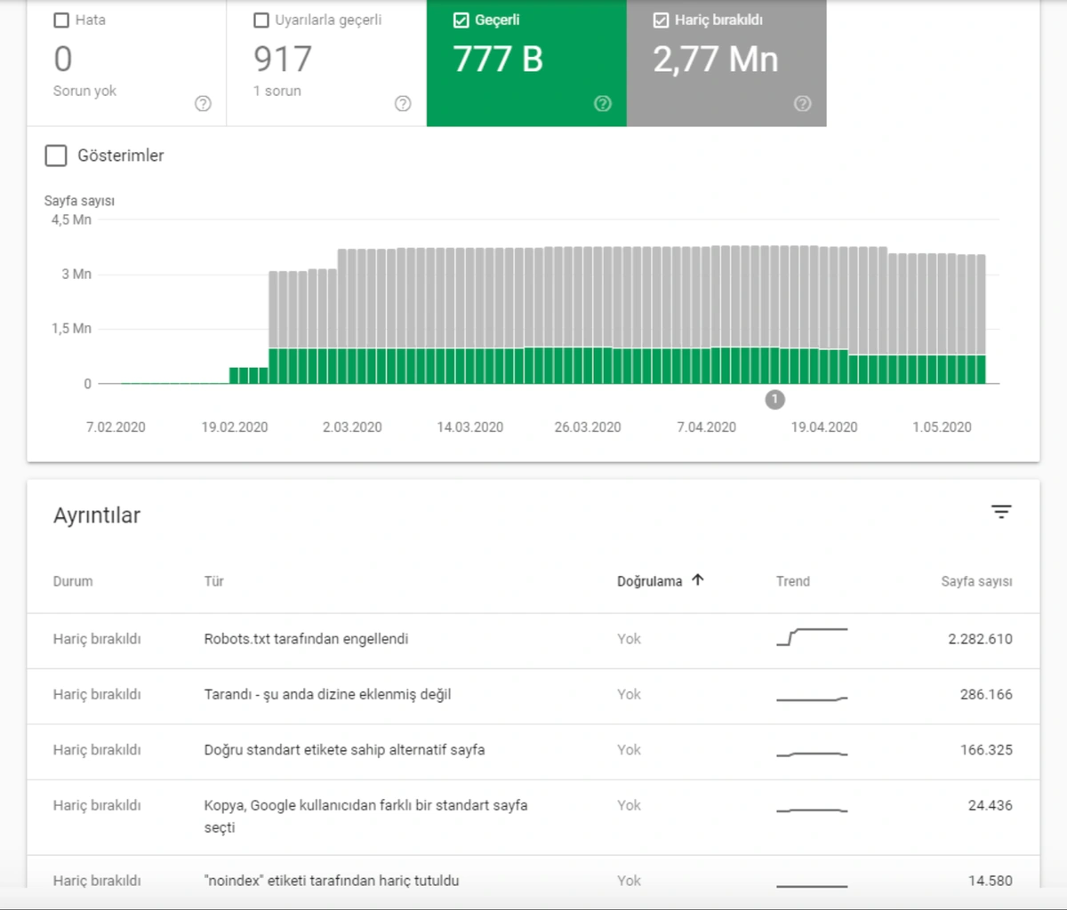 These fluctuations are also reflected in our Coverage Report. In one day we have decreased our Valid and Excluded Web Page amount more than 200.000. But after this, it also increased between 30.000 and 40.000 on different days.