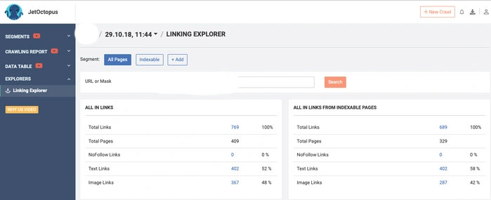 It has a free version so you can try it out by yourself. Out of Google’s world, the JetOctopus team recently introduced a module within their crawler – Linking explorer.
