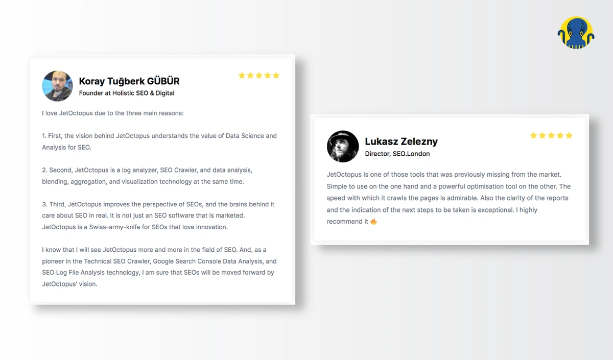 In 2021, JetOctopus was one of the finalists of the Global Search Awards 2021 and European Search Awards 2021 (in the category “Best Innovation”). We will keep innovating and implementing cutting-edge features in our tools for the most effective SEO analysis.
