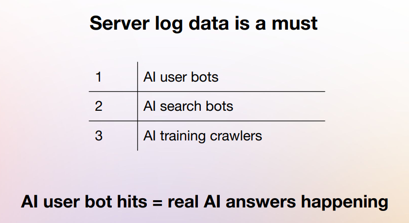 Some pages may perform well in traditional search but lack the structure or citations AI systems prefer. Others may not rank highly yet still appear well-suited for AI-generated answers. Logs make these gaps visible.