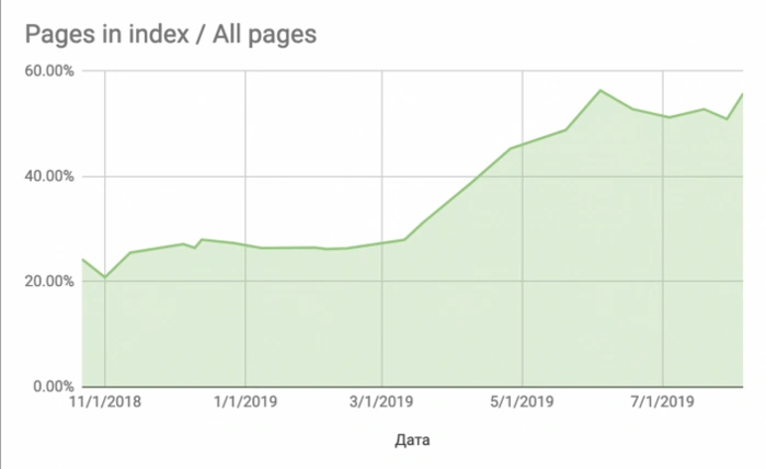 First of all – SEO traffic increase.The number of pages indexed by Googlebot is constantly increasing.