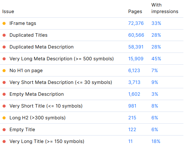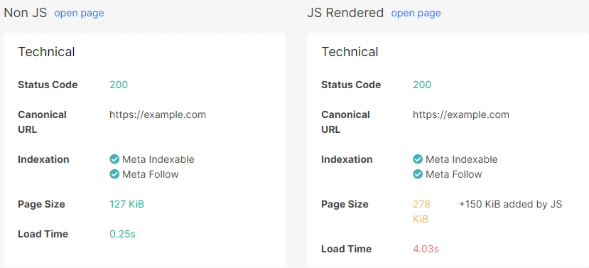 Many modern sites rely on client-side JavaScript frameworks. Tracking how many of your pages require heavy JS rendering is critical: content that is only visible after JS execution may take days or weeks longer for Google to index compared to static HTML. And AI bots are not able to render JS at all, so everything which wasn’t crawled, won’t be used to answer user questions.