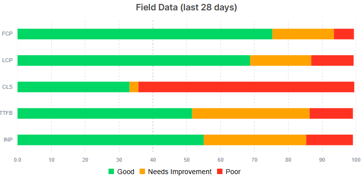 | PageSpeed Insights / CrUX | LCP, INP, CLS at field data scale | Yes (free) |