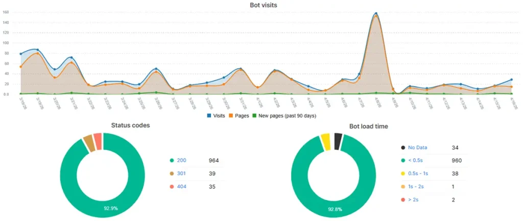 Monitoring the ratio of 200 (OK) vs. 4xx (client error) or 5xx (server error) responses across bot requests is critical. A high volume of 404s or 503s wastes crawl budget and signals poor site maintenance. Target: 95%+ of bot-visited URLs should return a 200 status code.