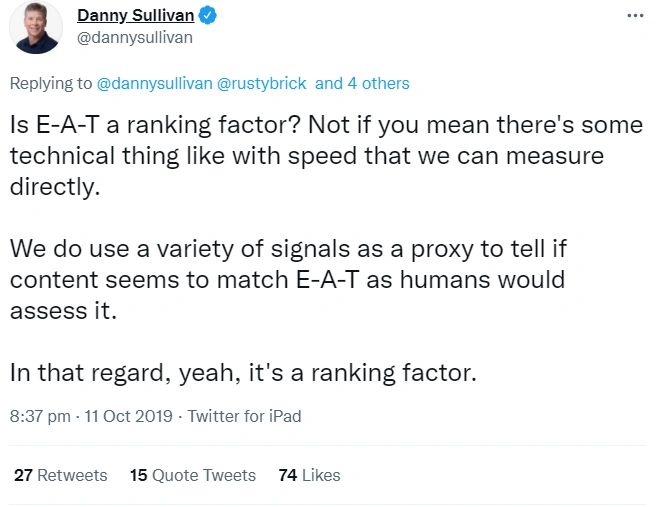 “In terms of search evolution, I believe Google will continue to refine its ability to comprehend topics and E-A-T signals across different forms of media and channels.