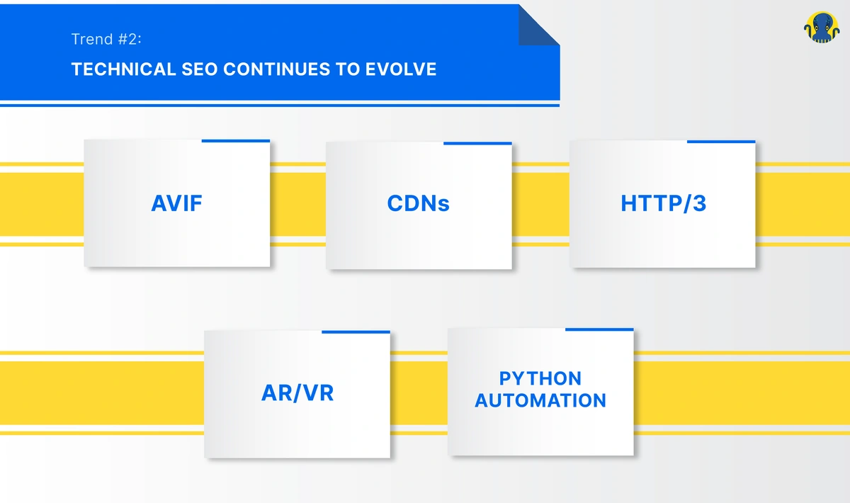 “For Tech SEO specifically, look back at older image formats such as JPEG-LS or JP2 and compare that to AVIF against what’s most compatible for your audience. There’s no harm in serving the basic .jpg or .png format to bots and serving newer formats to visitors. I feel speed performance will continue to evolve in 2022, even if bots don’t keep up with the trends. CDNs are already experimenting with HTTP/3, YouTube has it already, and whilst the SEO industry is still stuck with the HTTP/2 bug in the GSC inspection tool.”