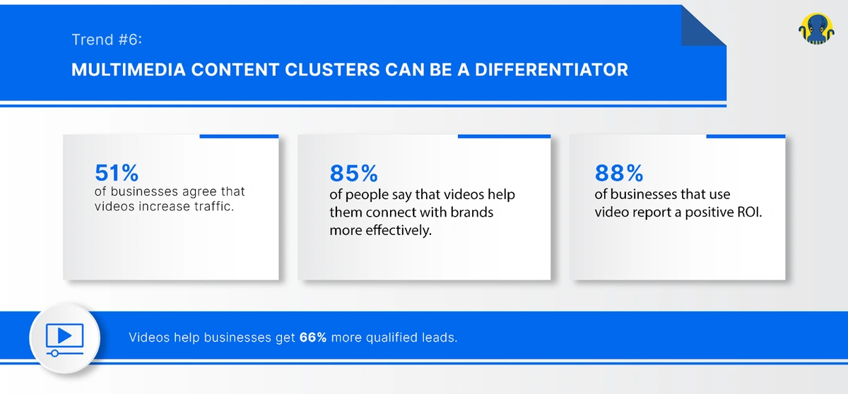 This model has worked well for brands like HubSpot, Ahrefs, New York Magazine, etc., and is fairly common today. But in 2022, you need to take it to the next level by combining this model with more multimedia content, especially videos. Consider these video marketing stats: