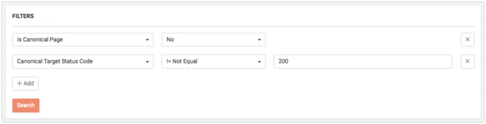 Canonized pages must have 200 Status Code response. To see canonized pages with other Status Codes, choose the following filters: