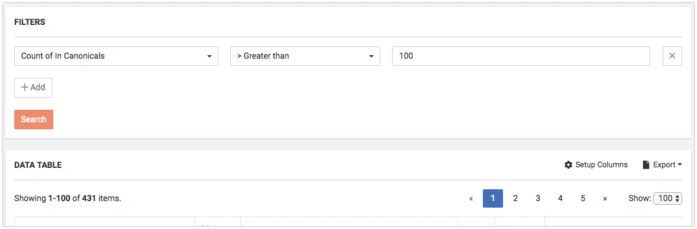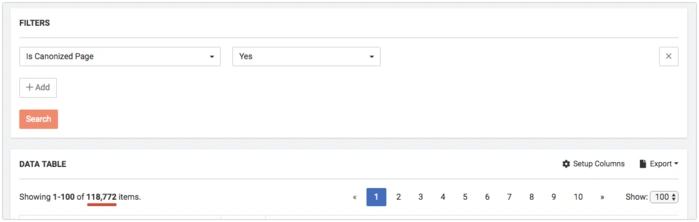 Find all canonized pages in DataTable. Set filter Is Canonized Page = Yes